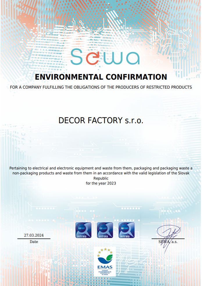 - UDRŽATEĽNOSŤ - dobre si uvedomujeme, že planétu máme iba jednu. Kvalitný sortiment s vysokou životnosťou obmedzuje vytváranie zbytočného odpadu a znižuje uhlíkovú stopu. Odpad a elektroodpad je poctivo triedený do zberných nádob a likvidovaný v licencovaných zberniach odpadu. Naši dodávatelia a my sami financujeme množstvo programov pre zlepšenie životného prostredia.
